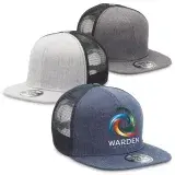 Our Heathered Flat Peak Trucker combines the on trend Flat Peak Trucker look with the business casual, heathered fabric.