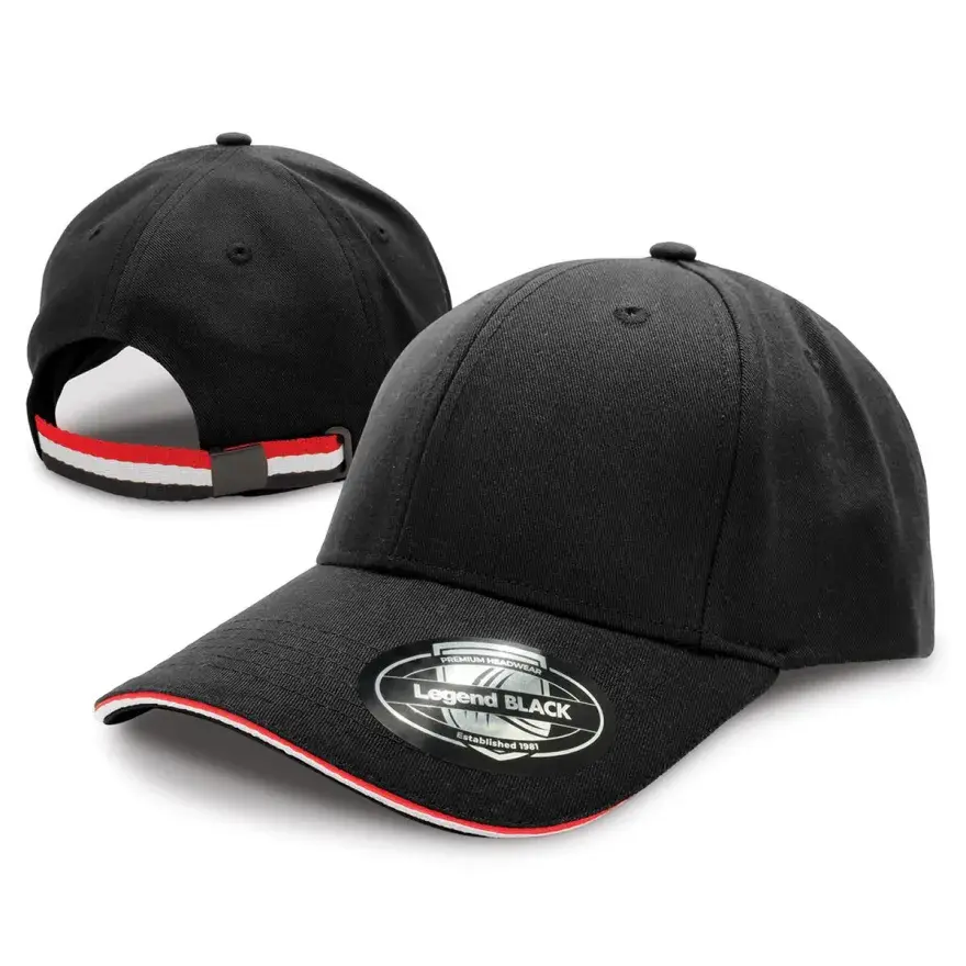 Upgrade your headwear collection with the San Marino Cap, featuring a double sandwich design and tri-stripe webbing strap for a contemporary look. The matt black clip buckle adds a touch of elegance to this versatile cap, making it the perfect choice for any casual or sporty outfit.