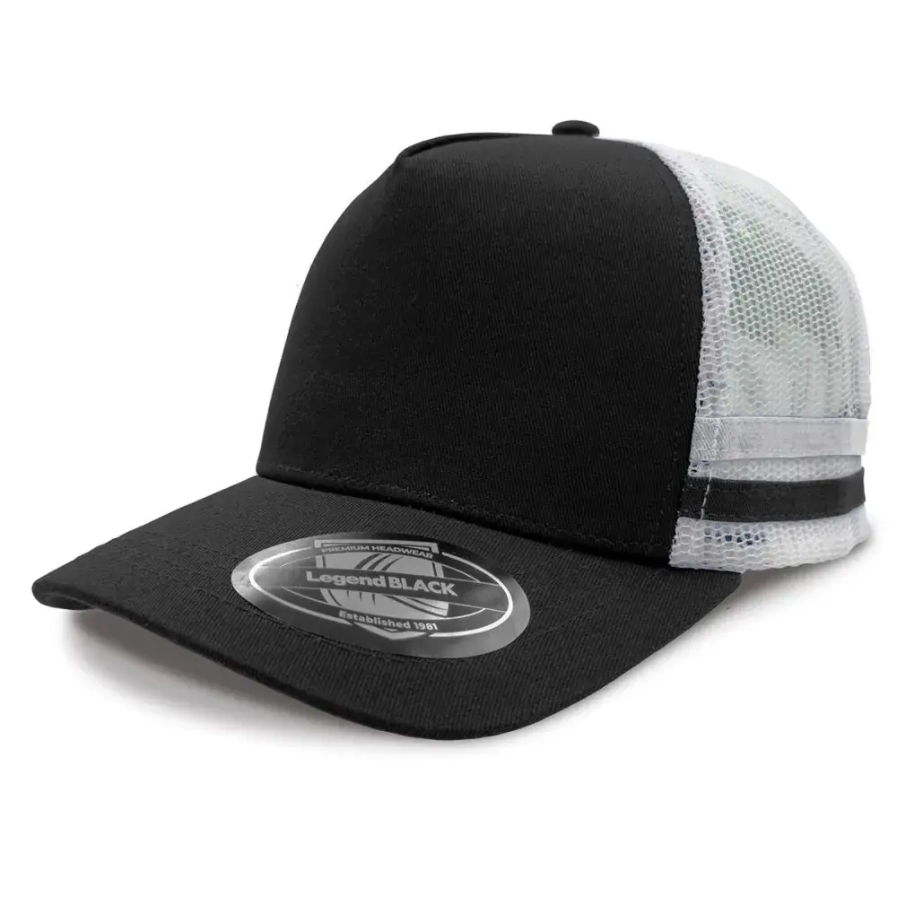 Custom Striped Trucker Black,White,White,Black