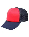 Description: 5 panel pre-curved peak trucker cap. Padded polyester front panel with back Nylon mesh. Ajustable plastic tab with padded cotton sweatband.