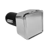 Quality dual metal car charger made of ABS plastic and metal square shape dual USB with flip lid maximum output 2.1A CE and RoHS complied.