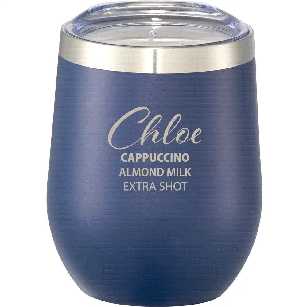 The construction also prevents condensation on the outside of the tumbler. Perfect accessory for wine. Easy sipping, push-on lid. Wide opening for comfortable filling and pouring. Durable powder spray color. 350ml capacity.