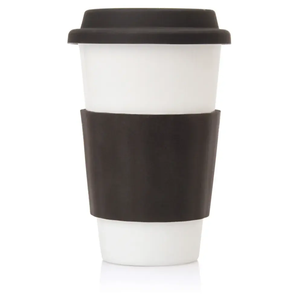 Become an environmentally friendly world citizen with this ceramic travel mug, saving the waste of all those takeaway cups. A double walled, dishwasher safe, construction with colourful silicone lid and sleeve make this a stylish and practical promotional product.