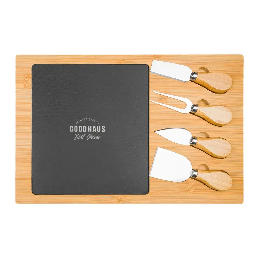 Bamboo cheese board with removable slate insert.