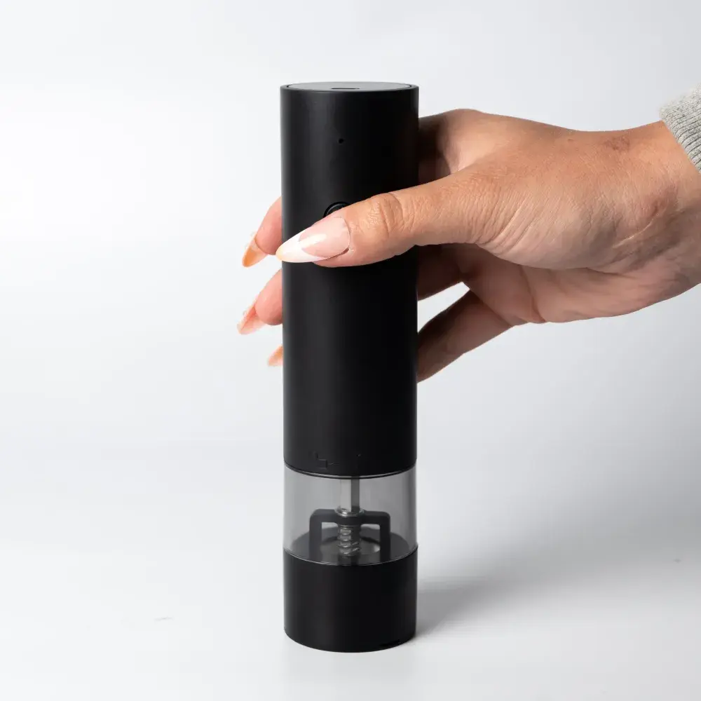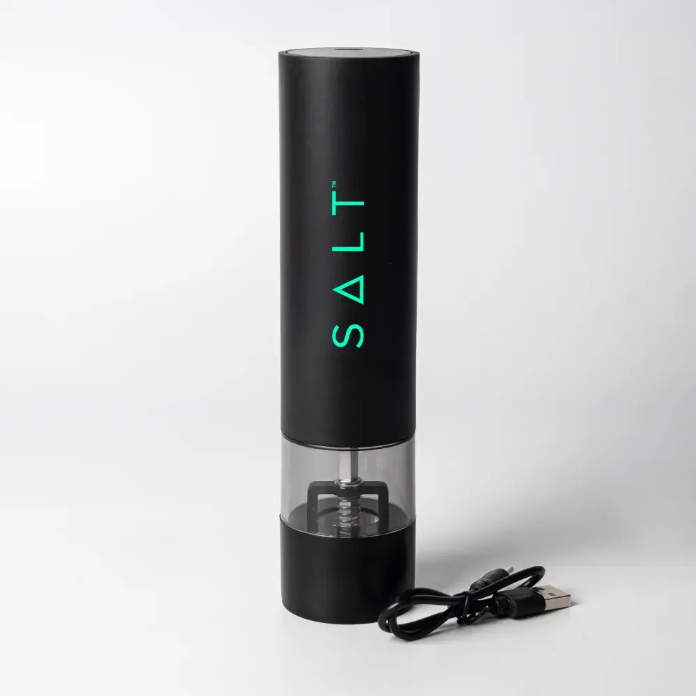 Add a twist of flavour with the Seasons Rechargeable Grinder. Designed with a combo of ABS, PC, stainless steel, and a ceramic grinding core, it’s ready to season things up in seconds. With a built-in 500mAh battery and a 40ml compartment that fits approximately 25g of pepper or salt, it’s as easy to use as it is on the eyes. Just charge, press, and grind.