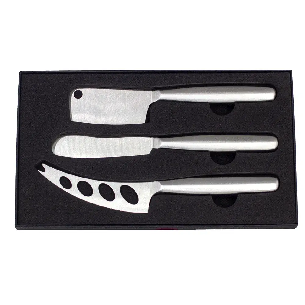 The knives are stainless steel and the perfect tool to use when serving your favourite cheeses.