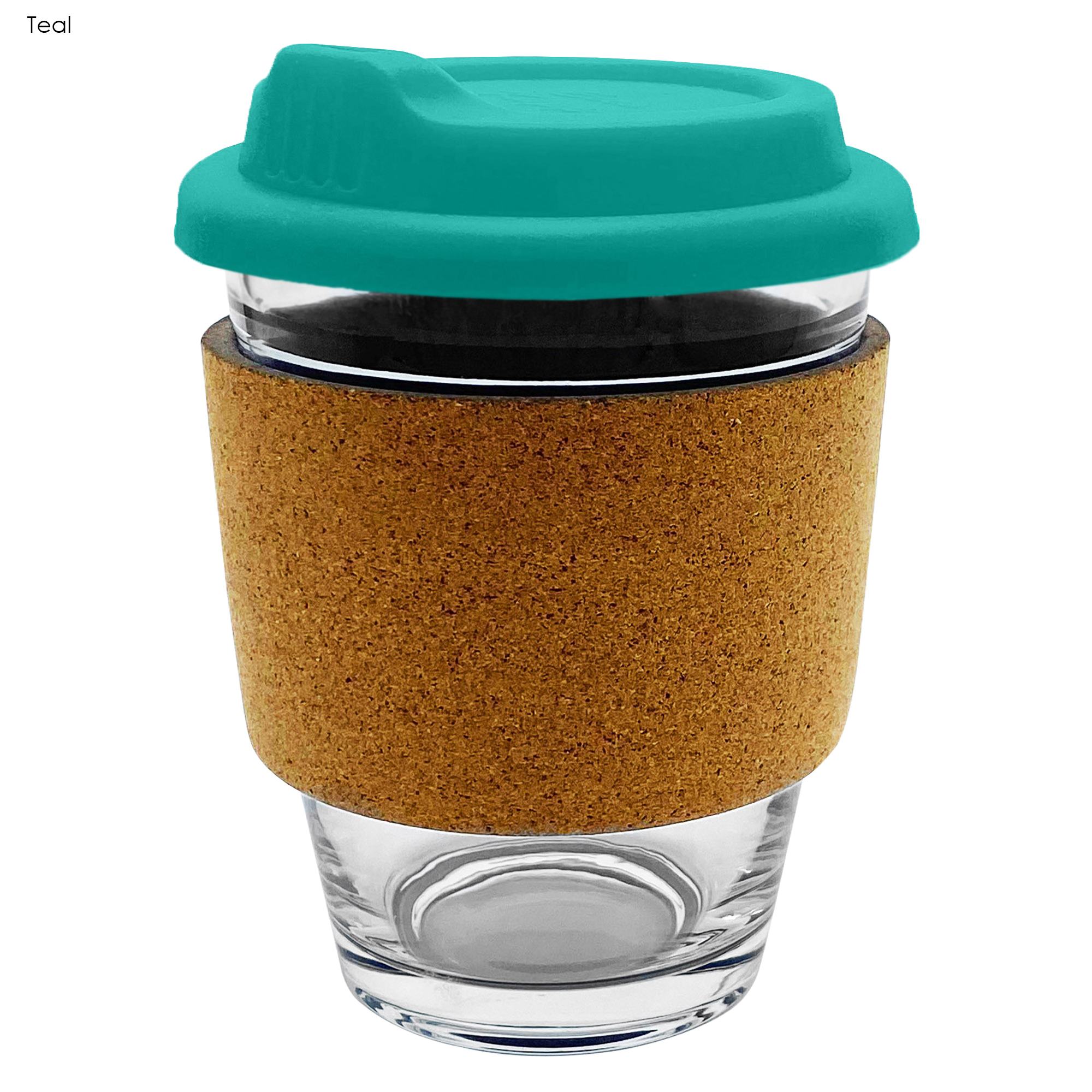 A trendy 340ml reusable glass coffee cup which is made of borosilicate glass the cup has a heat-resistant cork band and push on silicone lid the lid is made of European standard silicone material in 13 standard colours. It is presented in a cardboard box with a window you can also select the gift tube to pack the cup and have your logo printed on the tube. Protect the planet and help to reduce plastic pollution by choose eco-friendly glass coffee cups as a marketing gift. This cup is not dishwasher safe and handwashing is recommended. Note the silicone lid is not recyclable material.