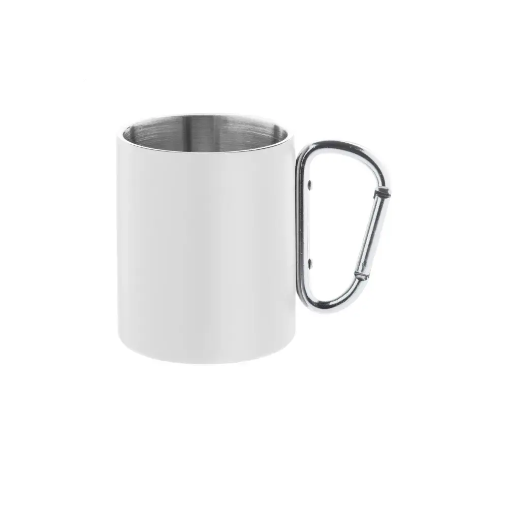 300ml capacity double-wall recycled stainless steel. | Matching recycled aluminium carabiner handle for easy attachment. | Keeps beverages hot or cold for extended periods. | Compact and lightweight for travel or outdoor use. | Eco-friendly design with kraft paper gift box.