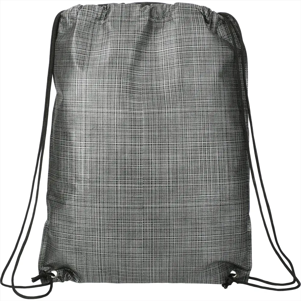 The Heat Sealed Drawstring Bag features a cinch opening and a fun metallic crossweave pattern.