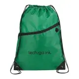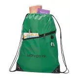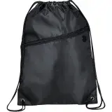 Made from 210d polyester drawstring bag has a large main compartment with a cinching rope closure.