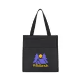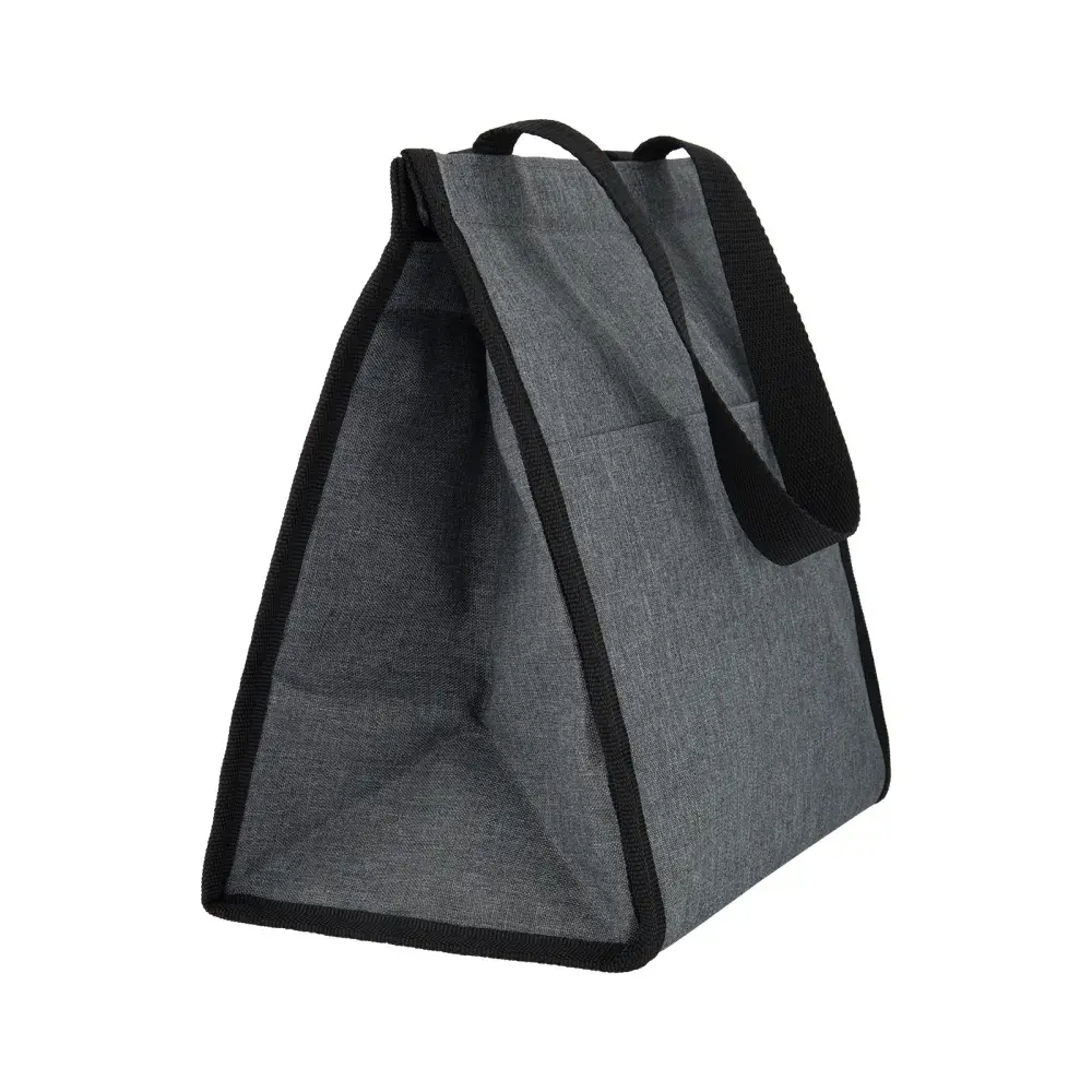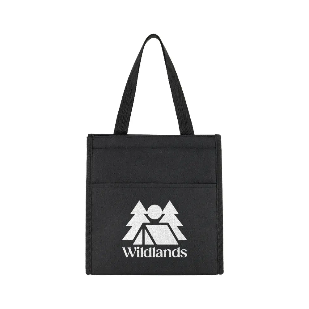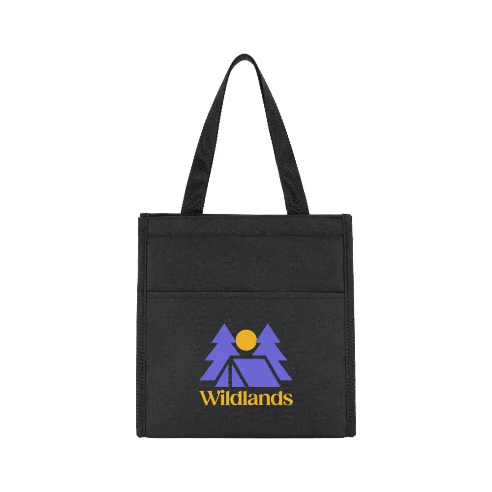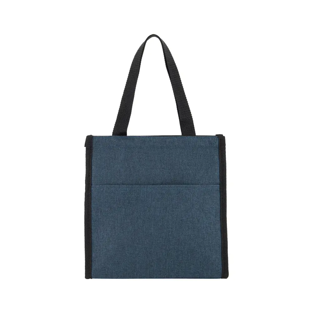 The Apex Cooler Bag is a reliable choice for keeping food and drinks cool on the go. Made with a durable cationic oxford fabric outer and foil-over-foam insulation, it ensures long-lasting freshness wherever your day takes you. Available in Black, Grey, or Navy Blue, it offers versatile colour choices to suit your style or brand. The practical Velcro closure makes for easy access, while two sturdy 25mm black nylon webbing carry handles provide comfort and support when carrying heavier loads. A handy front pocket adds extra space for cutlery, napkins, or smaller essentials, making it an ideal companion for work, picnics, or casual outings.