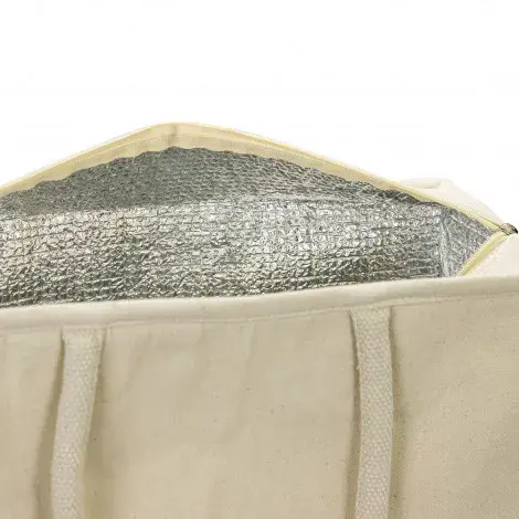 This large 26L cooler tote is made from durable 340gsm natural cotton with reinforced construction, designed to be an everyday essential. Featuring an aluminium foil lining to keep food and drink cool while on the go along with comfortable padded cotton handles, it's the perfect car companion for regular grocery runs, picnics, or daily errands.