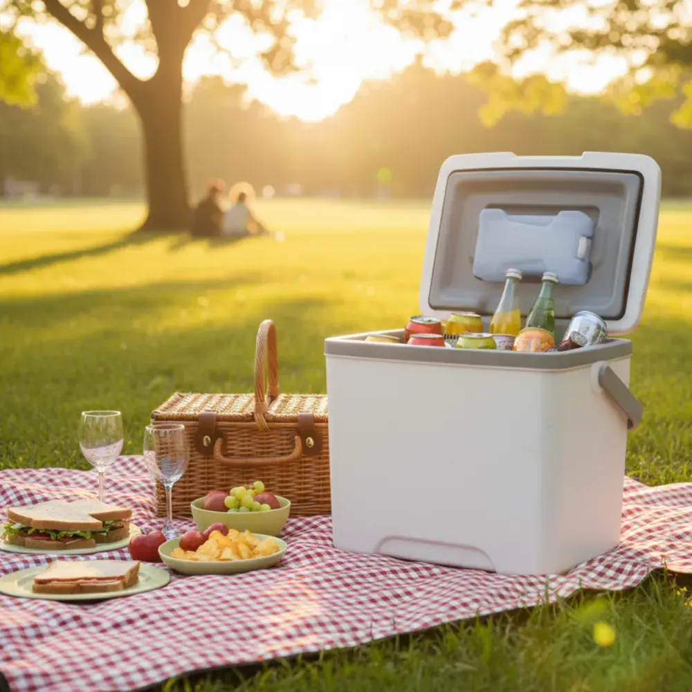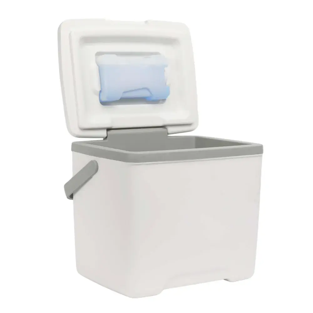 13L capacity offers generous storage for drinks and snacks. | Made from premium PP plastic for durability and long-term use. | Lightweight and easy to carry with a foldable handle. | Built-in space for detachable ice pack in the lid for improved cooling. | Secure lid design keeps contents fresh and leak-free. | Simple to clean and maintain. | Ideal for camping, beach trips, picnics, and travel.
