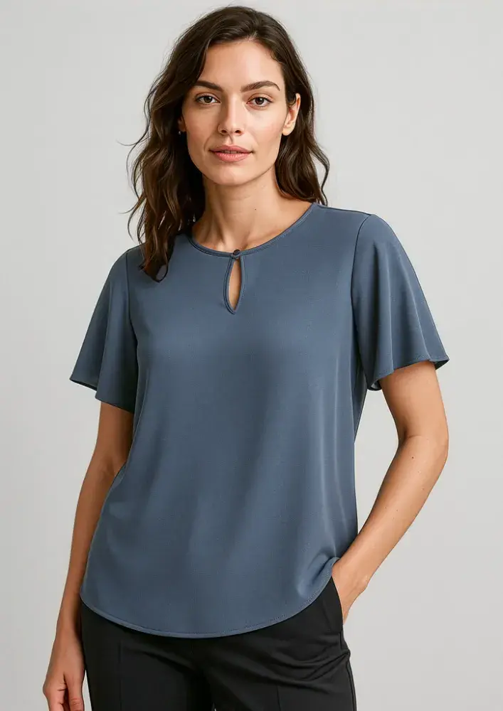 Designed to sit loosely on the body, Vienna features breezy fluted sleeves and a longer curved back hem for extra coverage.