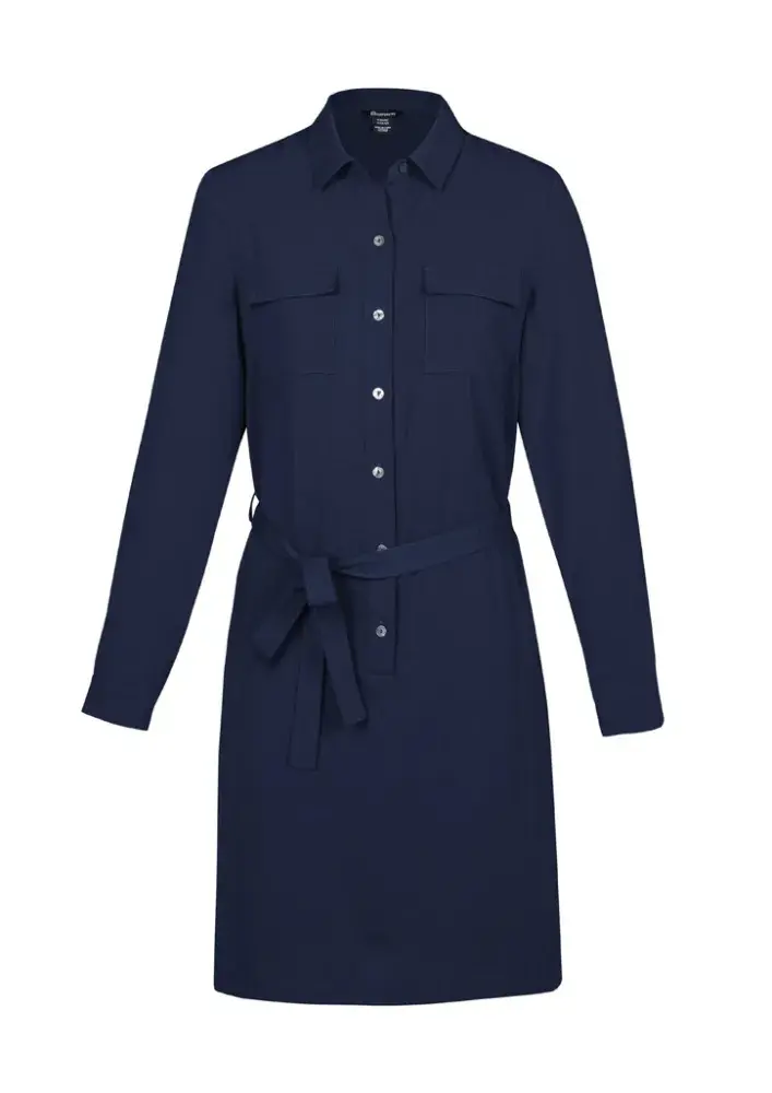 Both office and off-duty dress codes are covered with our chic shirt dress. With side pockets, secret bust button, detachable belt and side splits.