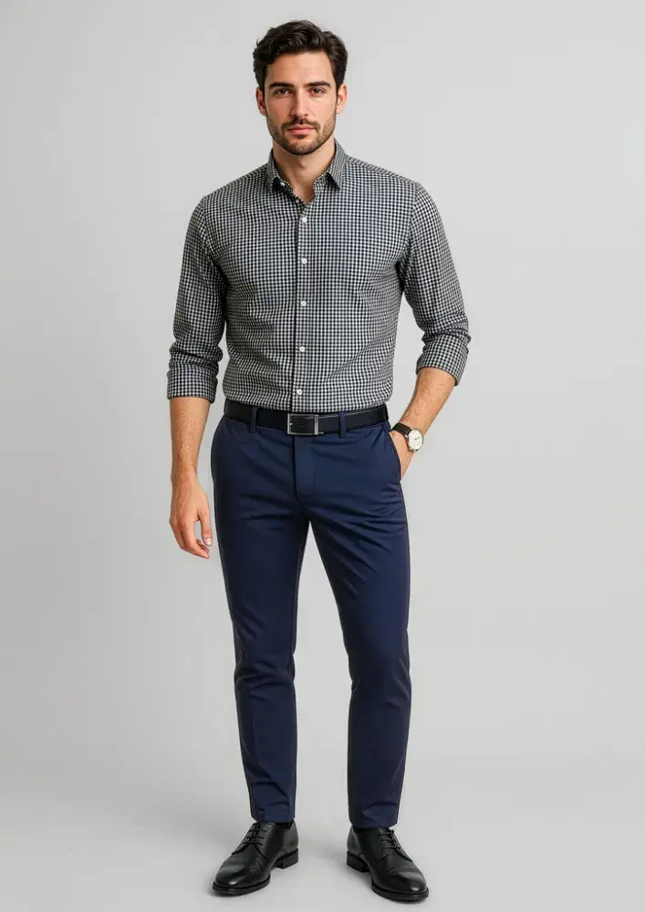 Main: 97% Cotton 3% Elastane, Trims: 100% Cotton Chambray.