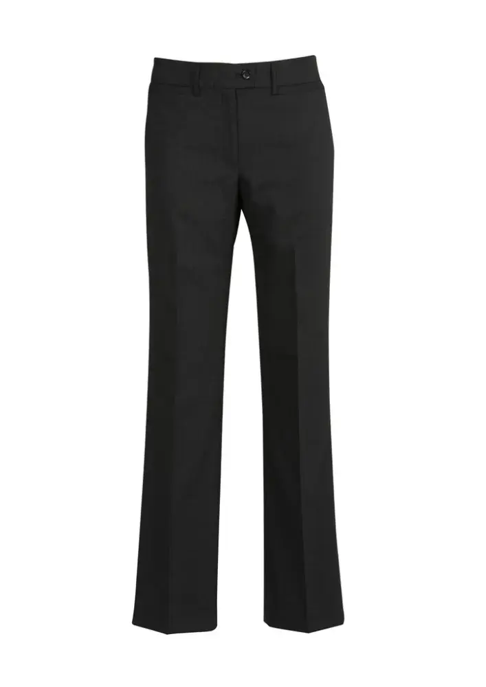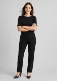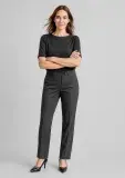 A comfortable everyday pant, mid-rise waist with a waistband designed to sit just below the navel. Straight leg, front horizontal pockets with one pocket on the rear.