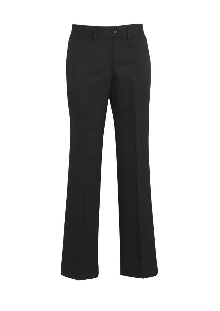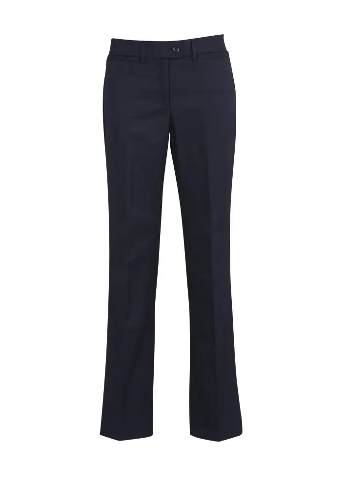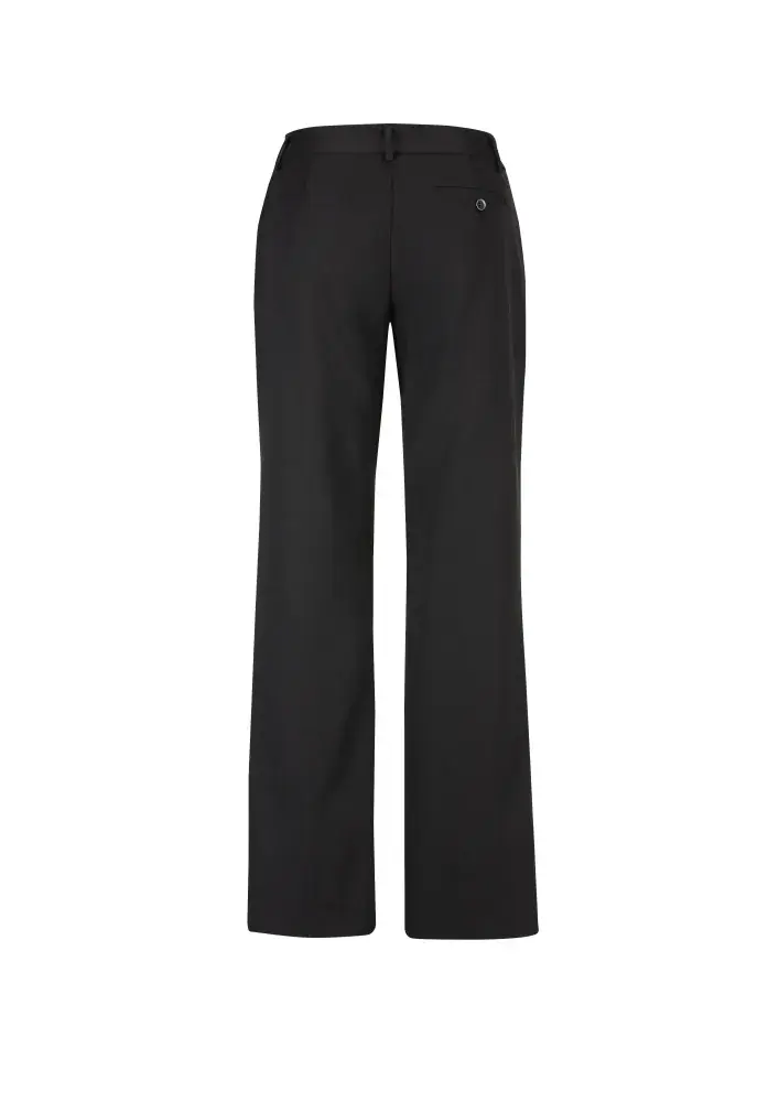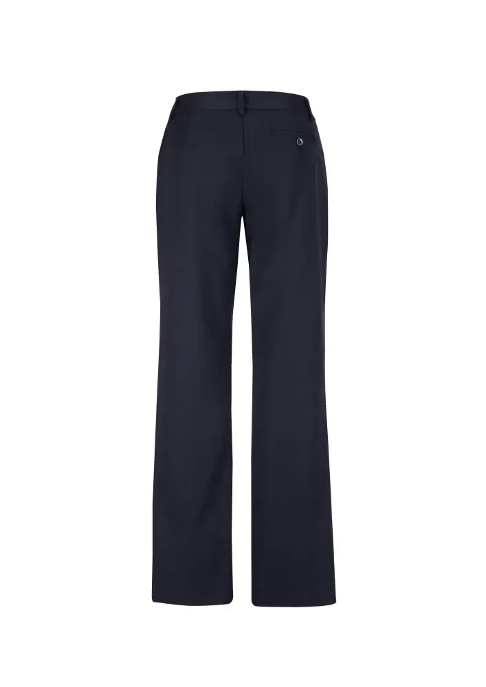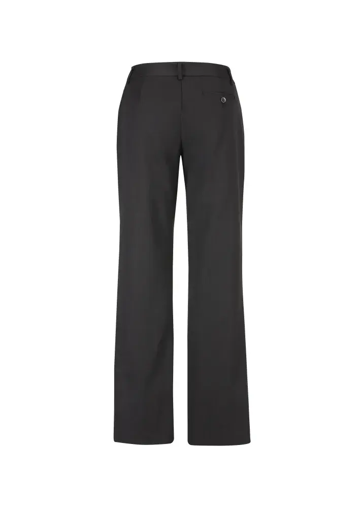A comfortable everyday pant, mid-rise waist with a waistband designed to sit just below the navel. Straight leg, front horizontal pockets with one pocket on the rear.