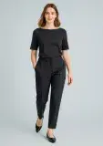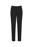 Straight leg pant with a slight tapering through the leg. Elastic sides and back, high-rise and side pockets for comfort and functionality.