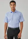 Yarn dyed dobby fabric. Breathable and lightweight making it perfect for warmer climates or those after a more cooler shirt. Gentle machine wash and cool iron.