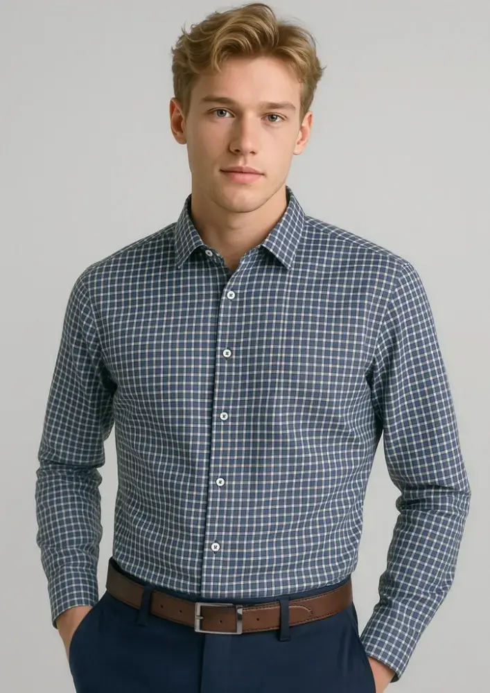 100% Cotton yarn dyed check, with easy-care finish up to 20 washes.