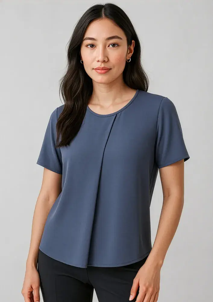 Sydney is designed to sit loosely on the body, featuring a breezy Georgette front and sleeves, with stretch jersey back.