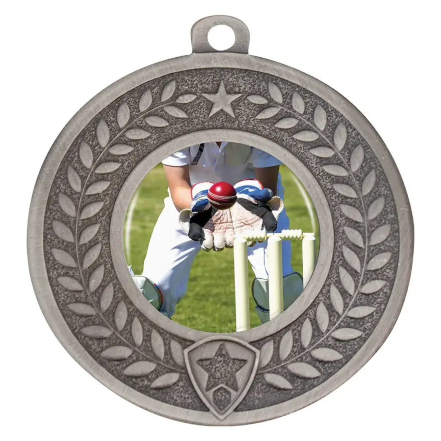 The Budget Heavyweight series offers prestige antique gold medals for a range of sports and activities at great value. The Cricket medal captures that critical moment of the ball hitting the stumps.