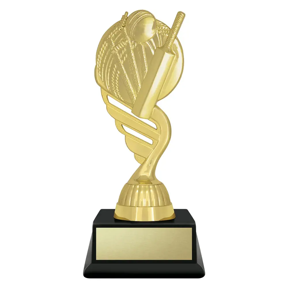 Classic cricket trophies in various sizes, a reliable option to award players and with a design finished in bright trophy gold.