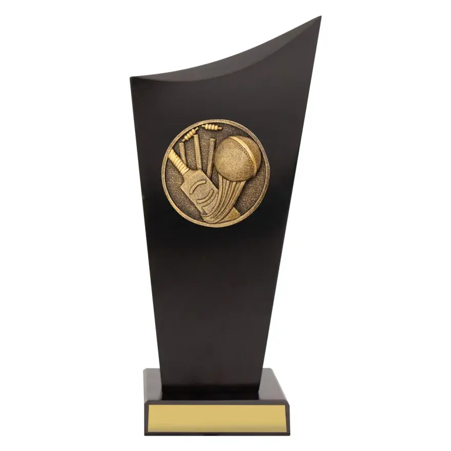 Apex cricket trophies offer an elevated design, multi-textured elements and brilliant silver & gold colours. Central space for your logo.
