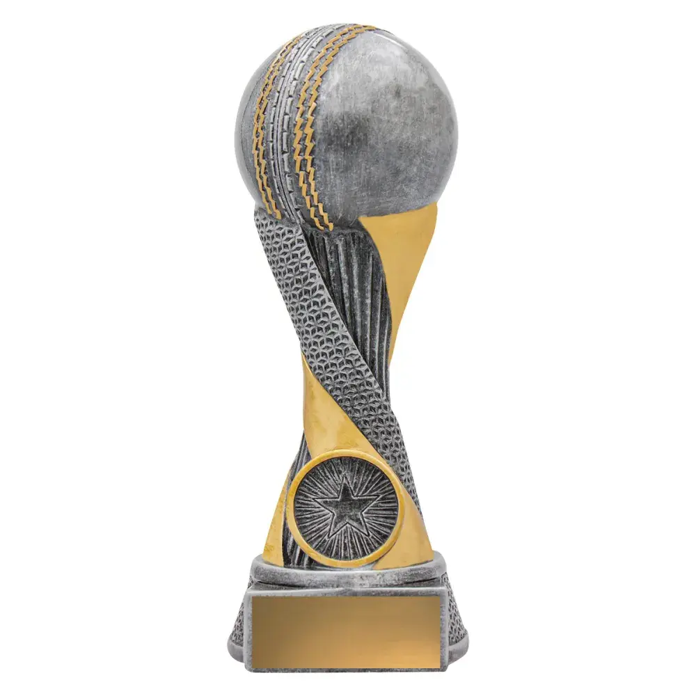 Apex cricket trophies offer an elevated design, multi-textured elements and brilliant silver & gold colours. Central space for your logo.