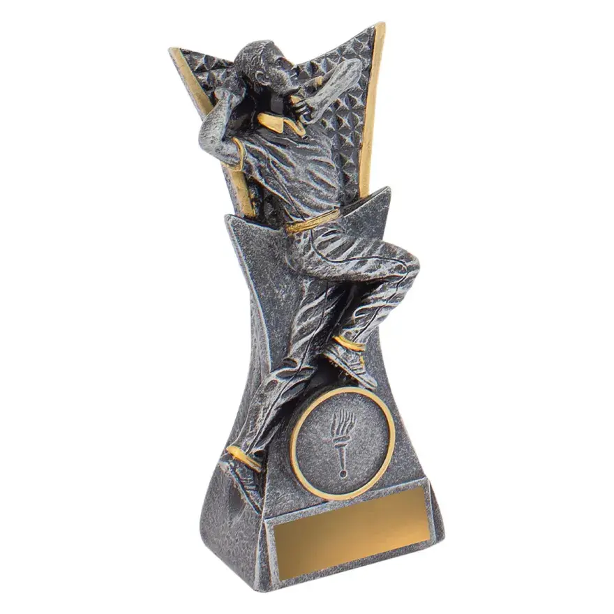 Apex cricket trophies offer an elevated design, multi-textured elements and brilliant silver & gold colours. Central space for your logo.