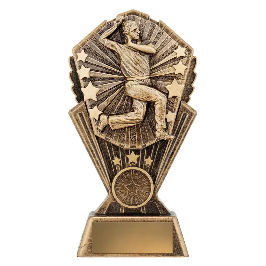 Elegant trophy award for players or coaches to hold a match or signed ball. Well suited for cricket or baseball / softball. Finished in trophy gold colours and base offers plenty of space for your engraving requirements.