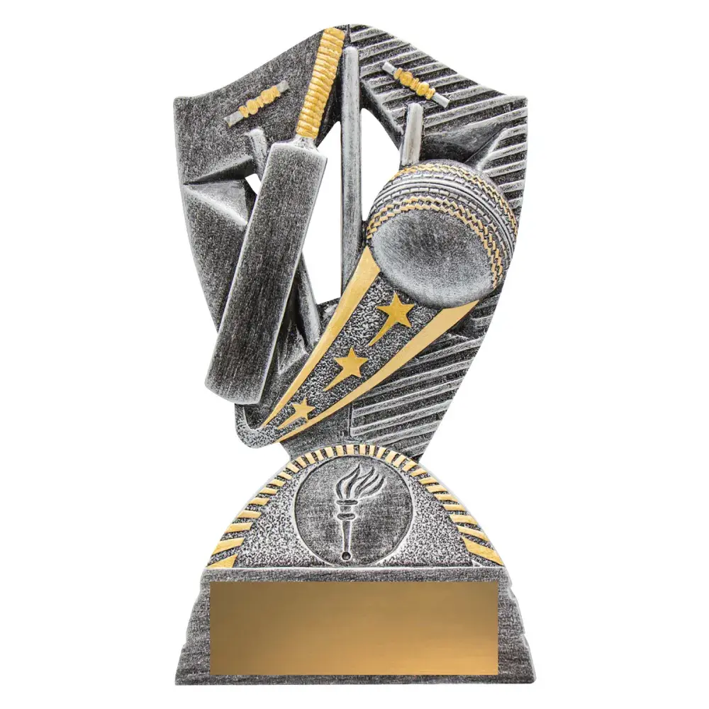 Brilliant design for the cricket trophies required for your team or club. The Gambit offers a dynamic theme in antique silver & gold - space for your custom logo.