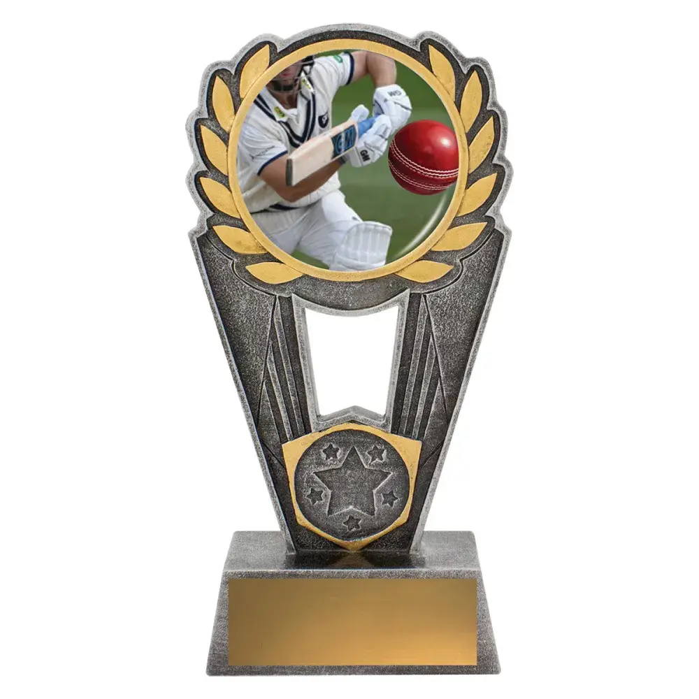 Polaris series offers a striking design of trophy with excellent options for personalisation. Trophies showcase a theme featuring a cricket batsman in action. Space for your 25mm logo if required.