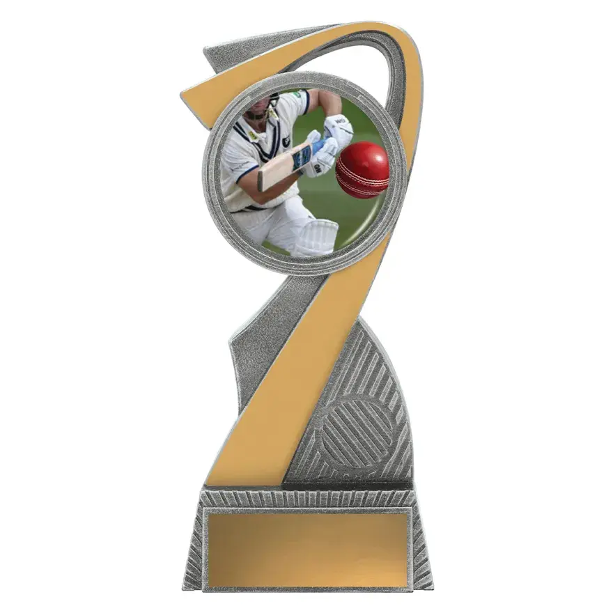 Trophy series in 3 convenient sizes, the innovative Torch design effectively showcases a ball & wickets design. This series - for Cricket - is finished in classic antique silver.