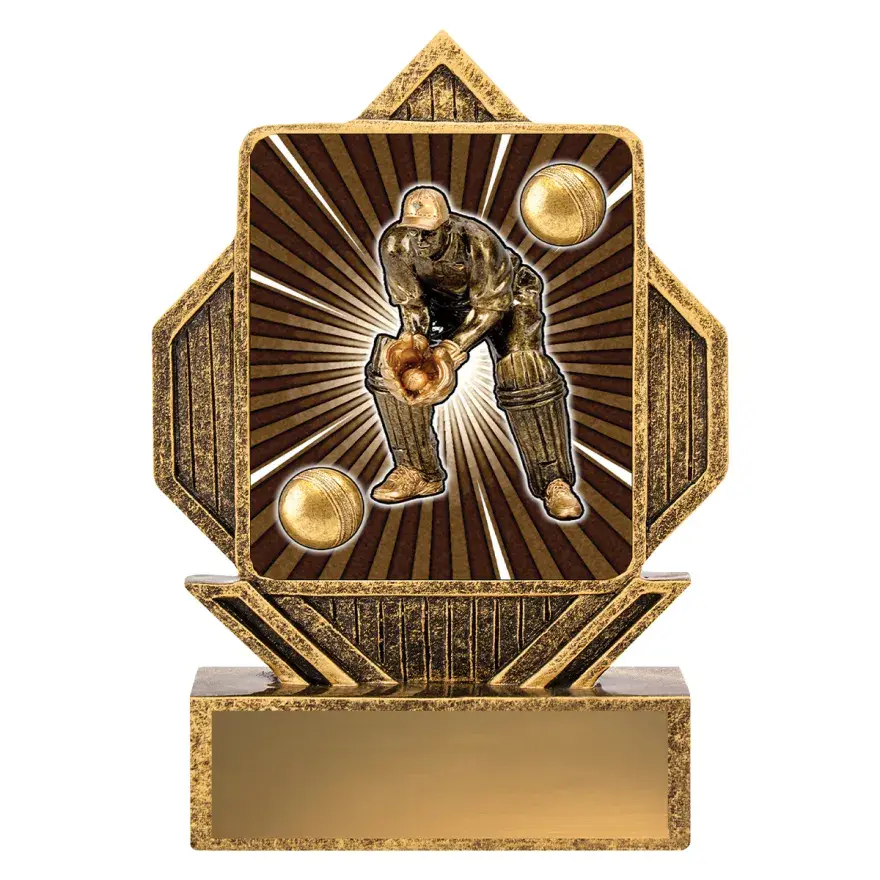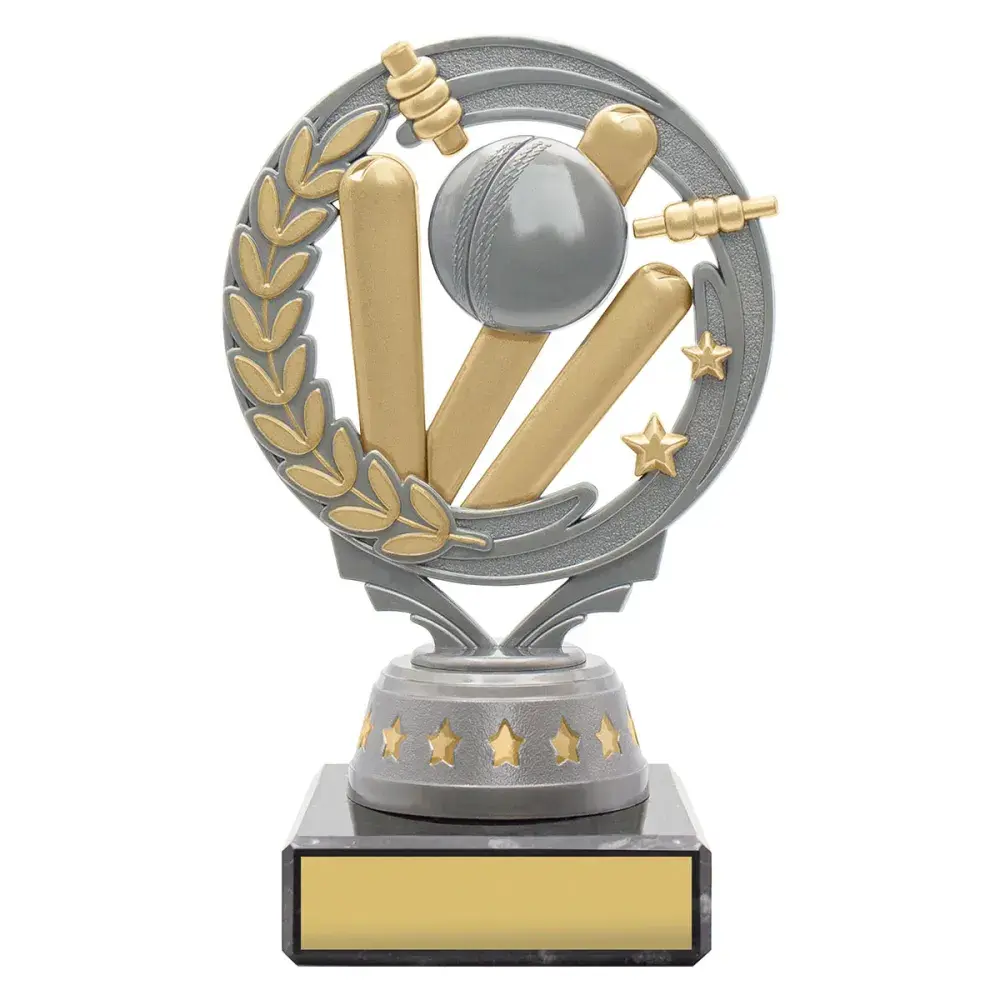 Series of excellent value cricket trophies - Torch offers a great design with iconic features on shiny black columns.