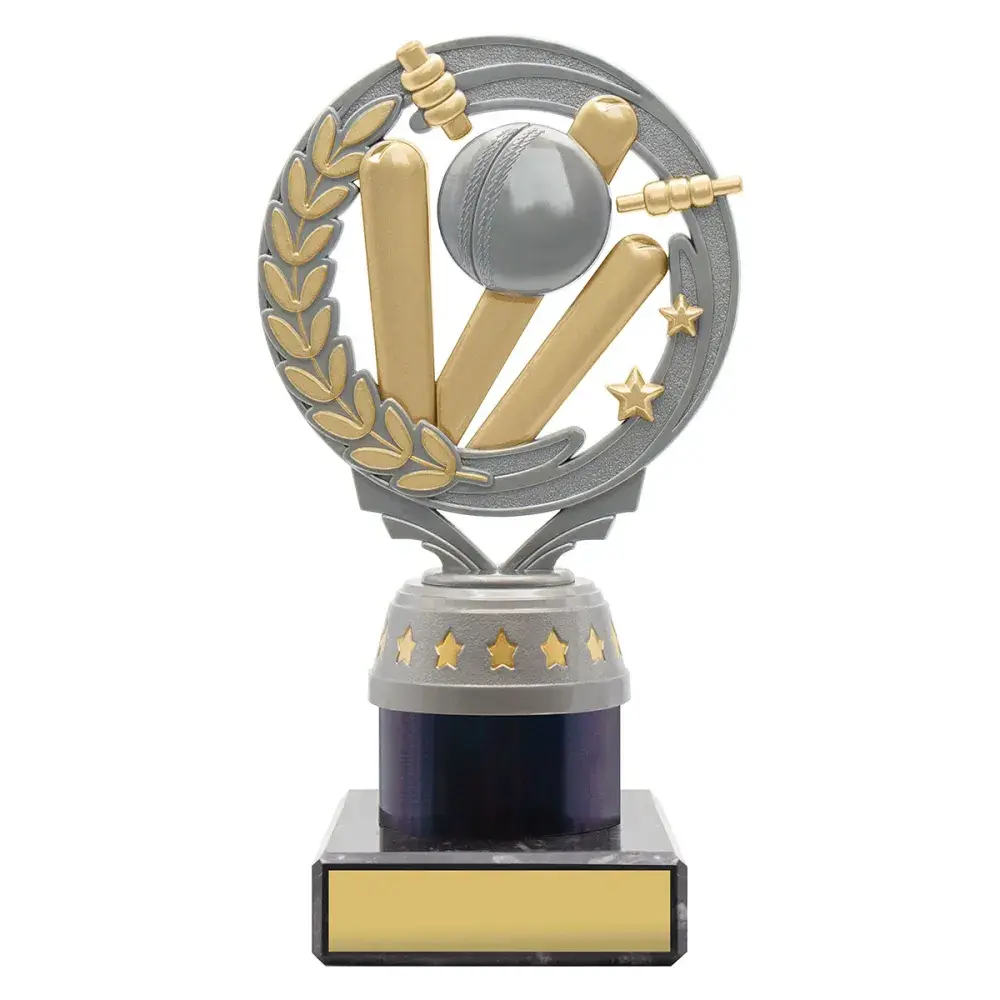 Series of excellent value cricket trophies - Torch offers a great design with iconic features on shiny black columns.