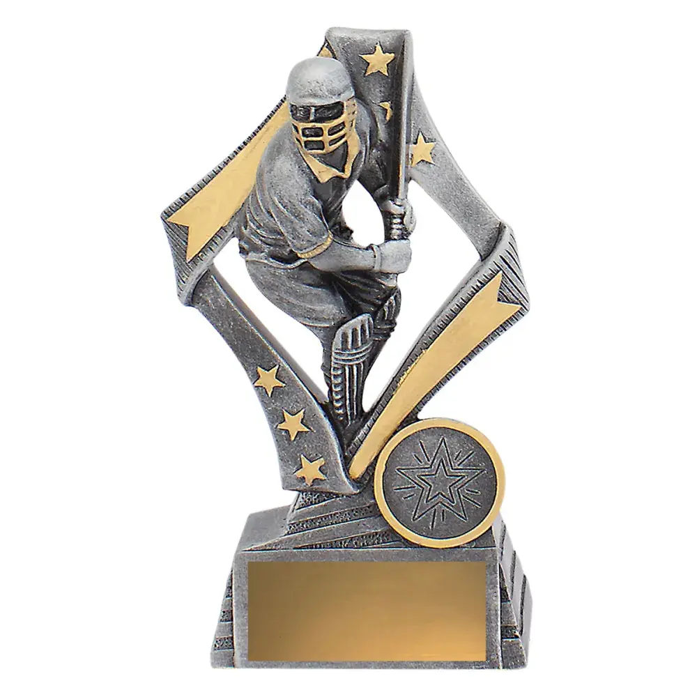 Inspiring design for your cricket trophies, Flag series features batsman in action and complete with classic antique silver colours. Substantial trophy with space for customisation if needed.