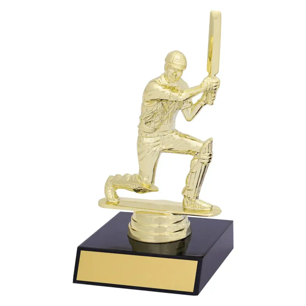 Cricket batsman figure on top of gloss black timber columns ideal for range of cricket trophies for your club or team. Timber available in different colours.