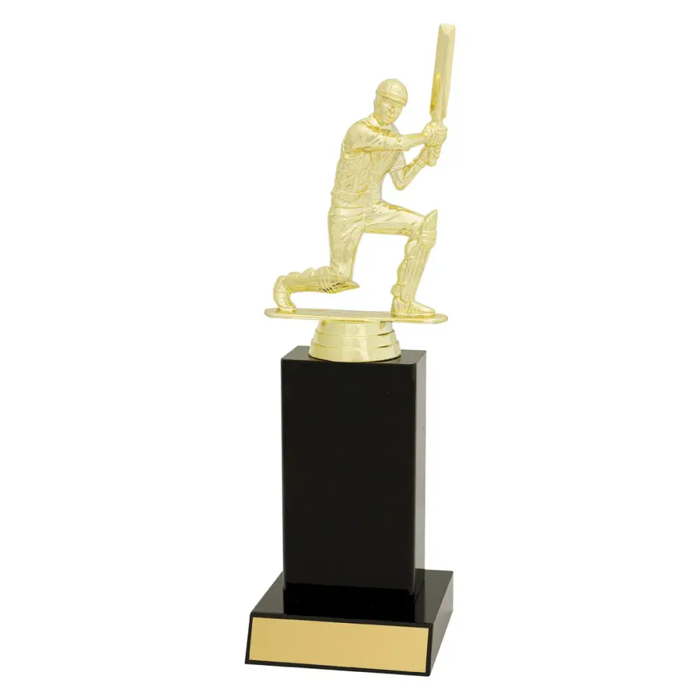 Cricket batsman figure on top of gloss black timber columns ideal for range of cricket trophies for your club or team. Timber available in different colours.