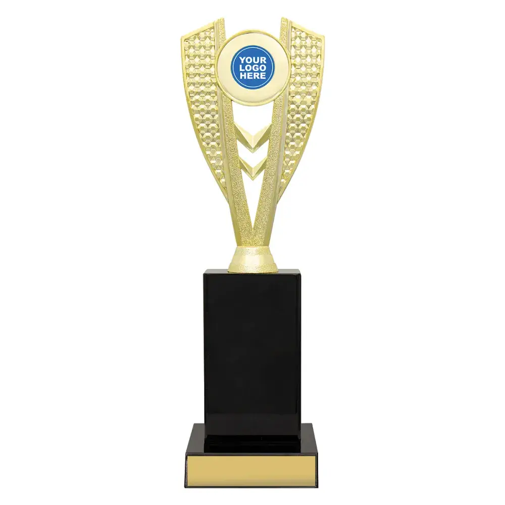 Classic series of black timber trophies with stylish Modus holder for your custom or club logo.
