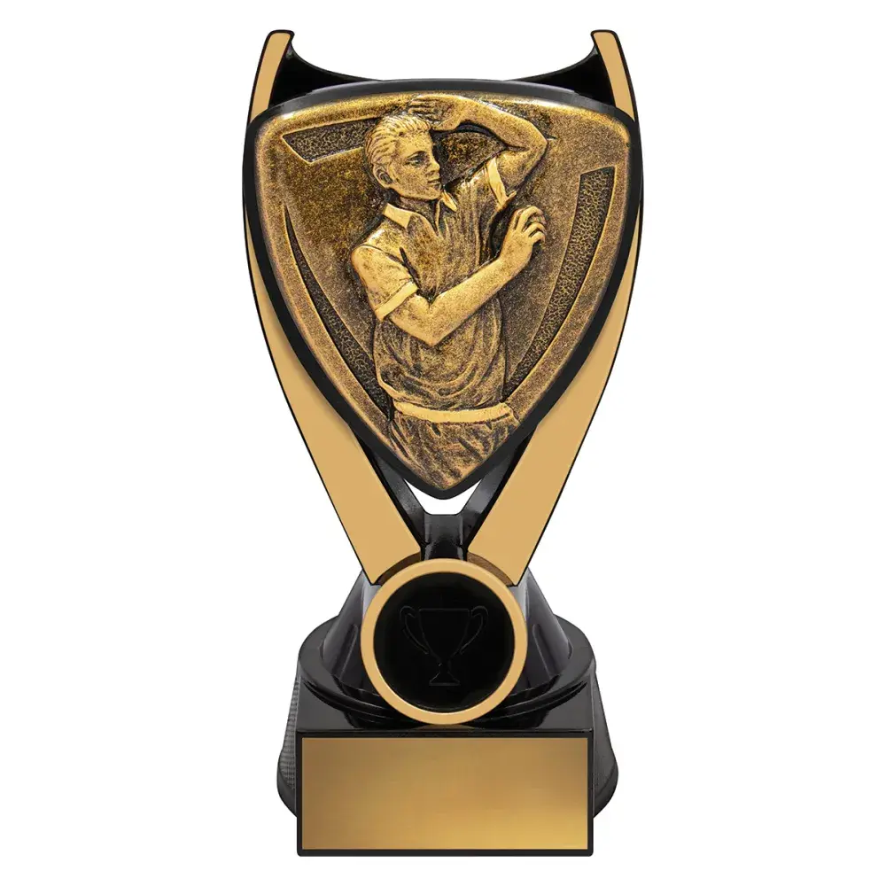Nova series of trophies present a unique black & gold colour combination with a bold 3D type design to really celebrate the sport or activity of your awards.