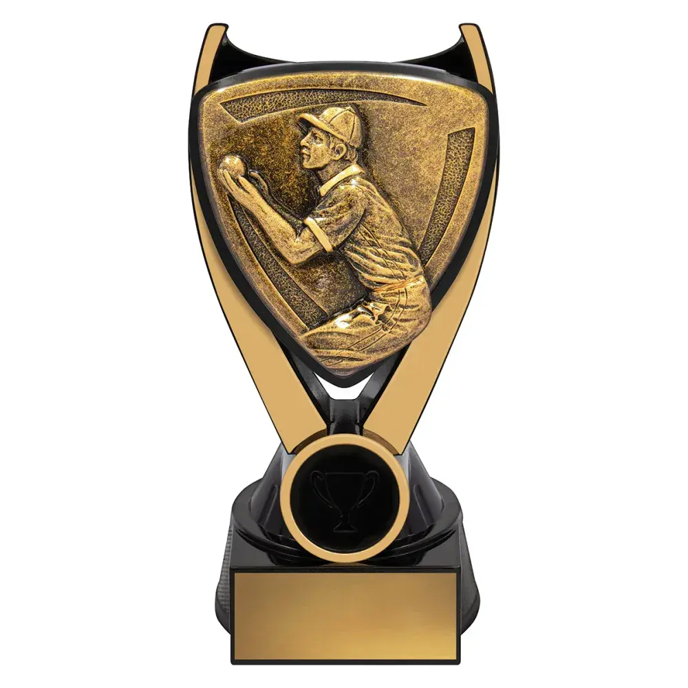 Nova series of trophies present a unique black & gold colour combination with a bold 3D type design to really celebrate the sport or activity of your awards.