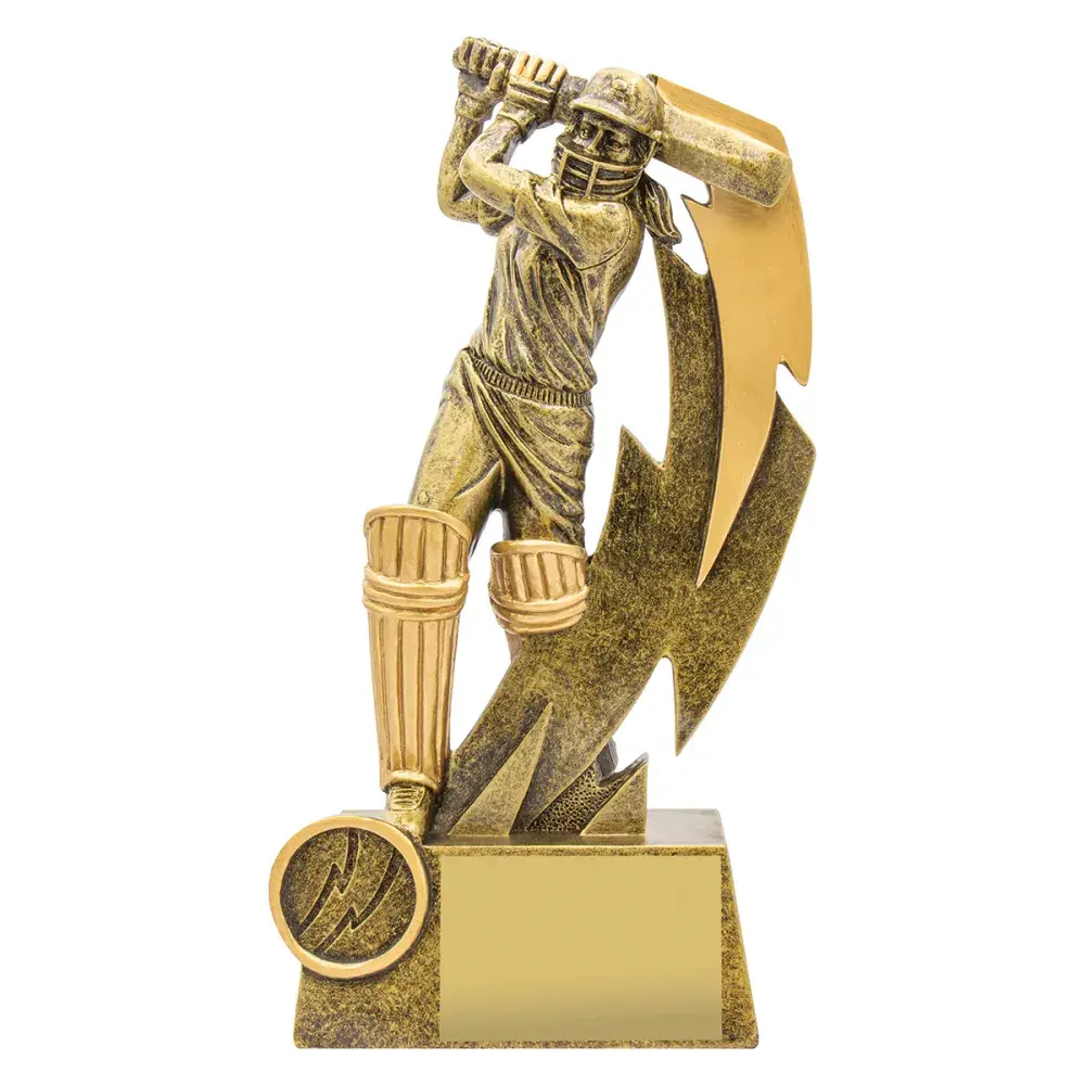 Cricket Shazam Batsman series in female showcases the driving batsman with excellent detail. Cricket trophies completed in classic trophy gold colours and available in 4 convenient sizes. There is the option if required of including your logo.