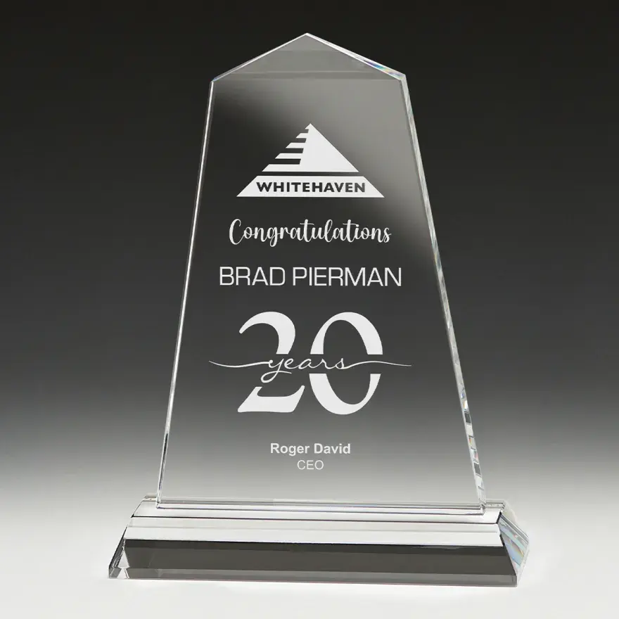 An impressive crystal award, the Capstone series presents a full face of personalisation options for your particular premium awards.