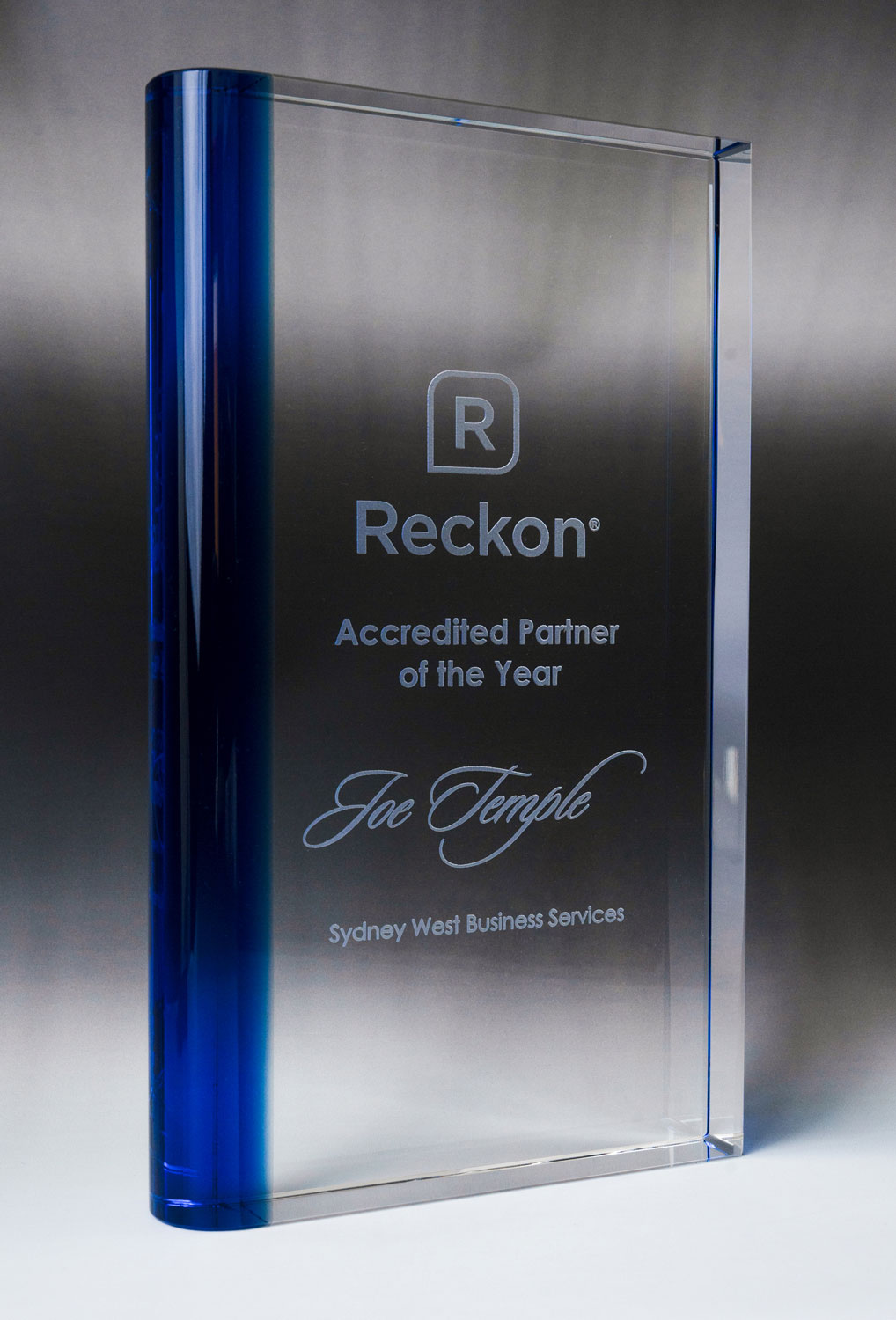Custom Crystal-Vertical Single Edged Curved Block Clear-Blue 200mm
