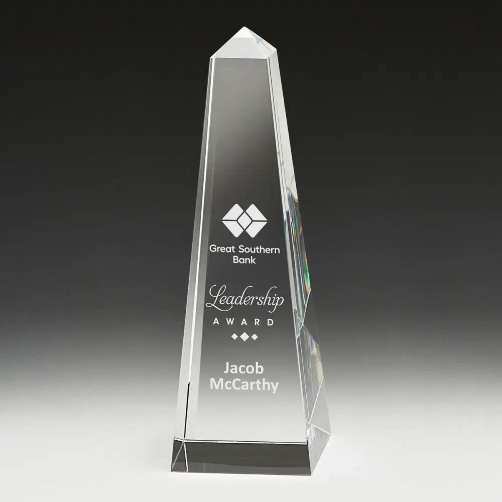 Premium tower style crystal awards, the Vantage series offers a prestige option for your absolute top peak performers.