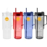 This 45oz (1,335 ml) travel mug, made from food-grade AS plastic, combines elegance with functionality. Its spill-resistant lid and plastic straw ensure convenience, while its vibrant color options offer a perfect canvas for your brand. Practical and stylish, this mug is the ideal companion for busy, on-the-go lifestyles.