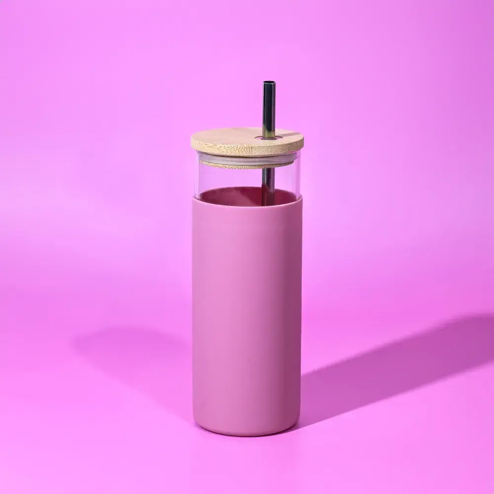 The Sunrise Tumbler is a must-have for summer smoothies and drinks on the go! Made from BPA-free borosilicate glass, it features a silicone sleeve for a comfortable grip and a bamboo lid with a tight seal to prevent spills. The removable stainless steel straw makes it easy to sip your drinks in style. With a 500ml capacity, it’s perfect for your iced coffee, beachside beverages, or poolside relaxation. Available in 7 vibrant colours to complement your vibe and make sure you’re seen in style.