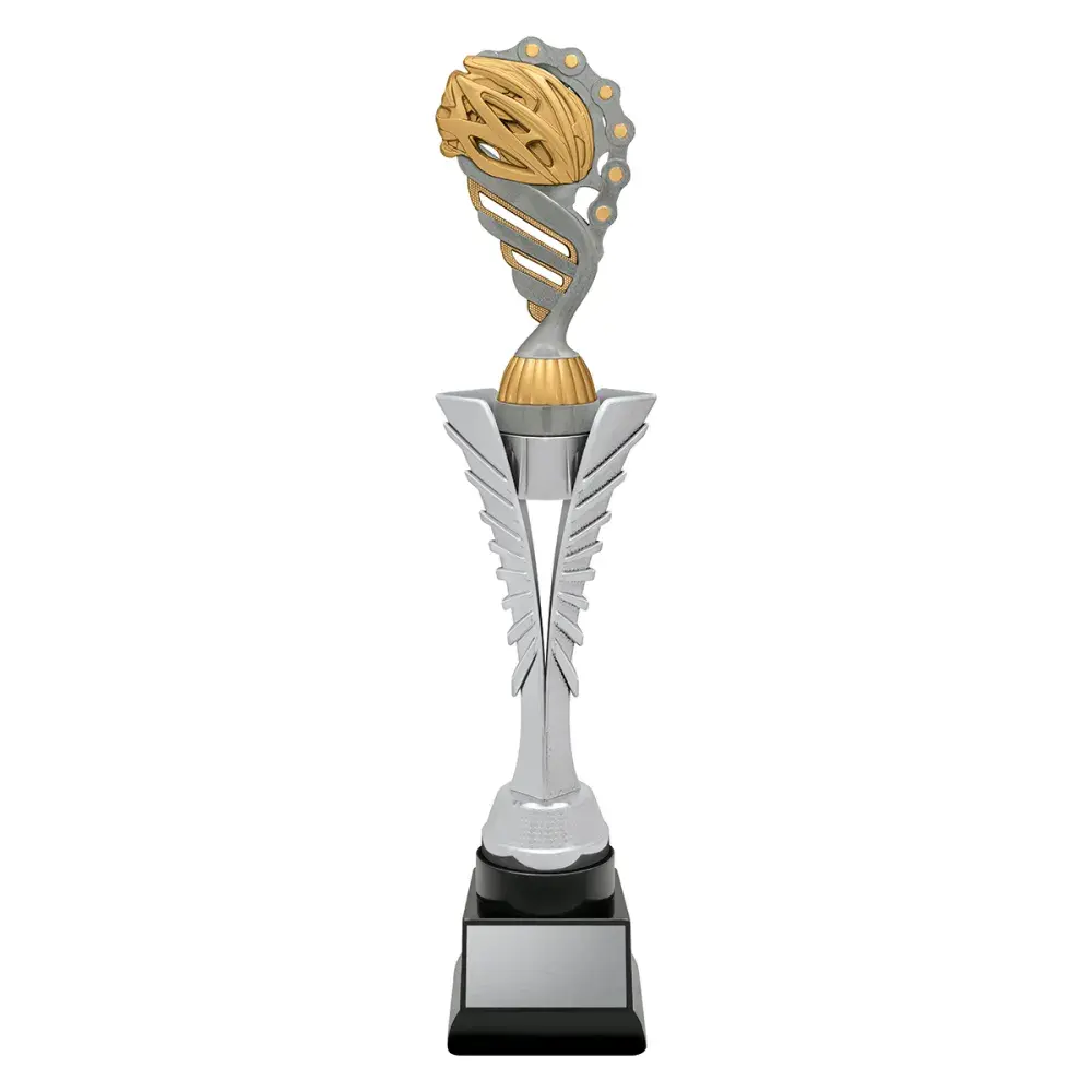 Silver Spear trophies showcase a brilliant top on a distinctive "spear" riser - the top finished in antique silver. Available in 3 sizes.